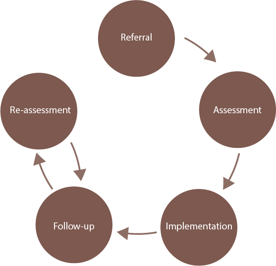Occupational therapy assessments for assistive technology involve a review of the client’s occupational roles, physical and cognitive abilities, as well as preferences and intended use of the technology. The client’s receptiveness to the device/modification and their social, cultural and physical environment are important factors that are considered. A trial is often recommended for complex devices to ensure the suitability of the technology for the client’s needs. Occupational therapists provide instruction in the use and proper care of assistive technology, as well as inform the client, and others involved in the use of the technology, how it promotes independence and safety in occupational performance (http://www.caot.ca/default.asp?pageid=4184).